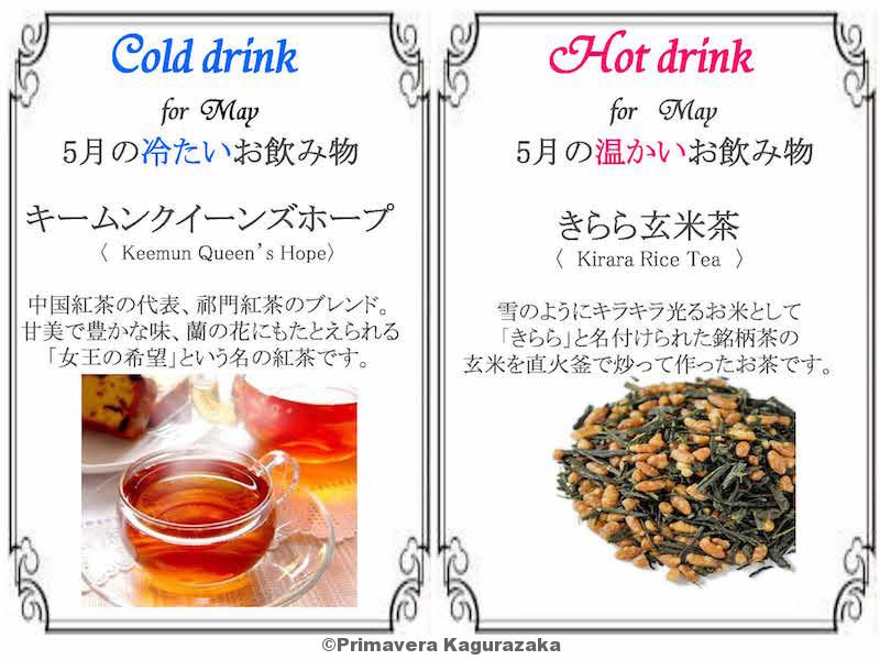 プリマヴェーラ神楽坂では、「四季」を感じていただけるよう月ごとに「季節のお茶」を提供させていただいております。